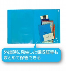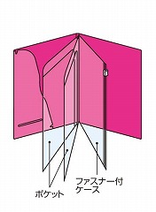 小物もなくさず収納できる便利なファスナーケース付。ポケットは便利な見開きタイプ。