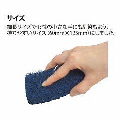 ちぎれにくく、型崩れしにくい特殊接着仕様のたわしです。食品では少ない青色なので異物の混入リスクを軽減。鍋釜の焦げ付きを素早く落とします。