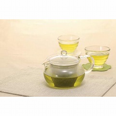 お茶の色が見えるガラスの急須。お茶の葉が広がる大きな茶漉し付きです。茶こしを外して電子レンジOK