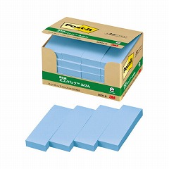 たっぷり入ってお得な通常粘着エコノパック製品。オフィスでの買い置きにおすすめ。一言メモ、伝言メモ、見出しに便利なサイズ。資源の有効利用を考え、古紙パルプ配合率100%の再生紙を使用しています。