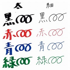 ●線幅/細字丸芯:約1.5から2.0mm、太字角芯:約6mm