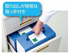 取り出しが容易な取っ手付きタイプのスーパードッチ!厚手の見本帳や大量の書類保管におすすめ。左右どちらからでも開けられる両開きタイプです。