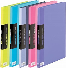 キングジムのクリアーファイルの定番「カラーベース」。表紙と同系色の中紙付き。不透明表紙、中紙ありタイプ。背とポケットが溶着されている固定式です。
