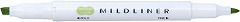 淡い色合いのラインマーカー「マイルドライナー」。落ち着いた色合いのインクなので目がチカチカしないで疲れにくく、書類のチェック、手帳や参考書のマーキングに最適です。太細両用のツインタイプの蛍光ペンです。
