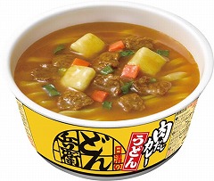 【西日本風】どん兵衛ならではの、もっちりしたつるみのあるうどんに肉だしと旨だしをブレンドしたカレーつゆをご賞味ください。