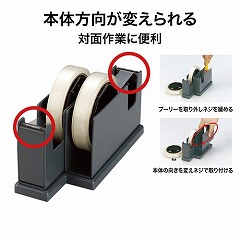 2種類のテープが使える業務用カッター。向きを変えて使うこともできます。