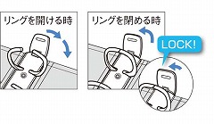 リングとじ具をロックできるので、書類が抜け落ちにくい。しっかりした貼り表紙タイプ!