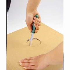 荷造り・開封・工作に。刃の幅がせまいので、小さな円も簡単に切れます。両刃なので、どちらからでも使えます。つばがあるハンドルは、手のすべりを防止し、握りやすく安全に作業ができます。