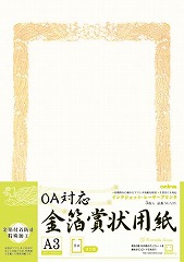 金箔仕様で紙厚がある豪華なプリンタ対応賞状用紙です。(コピー,レーザー,インクジェット)手書き用としてもお使い頂けます。賞状のさまざまな内容のテンプレートをホームページより無料ダウンロードできます。