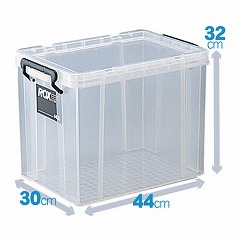 ロック式のフタ付きで丈夫な樹脂製ボックス。スタッキングもできて便利!キャスター(別売)を取り付ければ移動もラク!ロープを掛けられる溝がフタに付属。