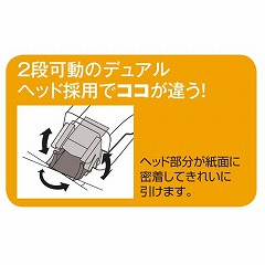 テープの貼り心地抜群!ヘッドが2段階に可動するデュアルヘッド採用で、テープの先端が紙に密着。ブレずに真っ直ぐ引くことが出来ます。