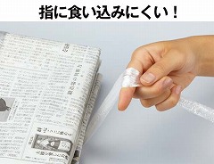 通常の10倍以上の太さの荷造りひも。従来二重・三重に巻いて手間のかかる梱包作業を一巻きで簡単に済ませることができます。さらに持ち手がソフトで手に食い込みにくい、作業効率を重視した商品です。