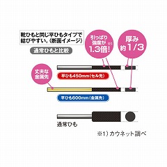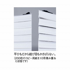 結びやすくて、ほどけにくい。フラットで厚みの少ない平ひもなので、とじた書類を重ねてもかさばりません。通常のつづり紐と比較し約1.3倍の強度があります。