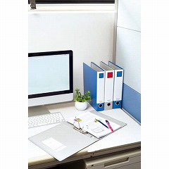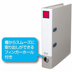 書類の端がそろうレバータイプのDリングファイル。棚からスムーズに取り出しができるフィンガーホール付き。貼り表紙タイプはこちら。