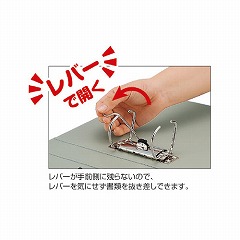 書類の端がそろうレバータイプのDリングファイル。棚からスムーズに取り出しができるフィンガーホール付き。貼り表紙タイプはこちら。