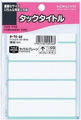 書類やファイルの分類に使用できる粘着剤付きのタイトル表示シール。鉛筆、ボールペン、サインペンなどできれいに記入できます。台紙から外して、すぐ貼れます。タイトルブレーン対応。
