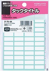 書類やファイルの分類に使用できる粘着剤付きのタイトル表示シール。鉛筆、ボールペン、サインペンなどできれいに記入できます。台紙から外して、すぐ貼れます。タイトルブレーン対応。