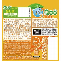 世界ナンバーワンジュースブランドであるミニッツメイドにQooが仲間入りしました。合成着色料・保存料不使用で安心してお飲みいただけます。純水使用。25%混合果汁入り飲料。