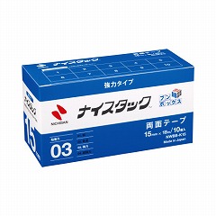 両面テープの定番、ニチバンのナイスタック。板紙・金属・プラスチックなどの平面の固定に便利な強力タイプ。簡易包装により、シュリンクパックを削減しました。