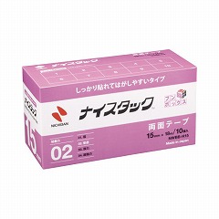 ニチバンのナイスタックシリーズ。あとではがしたい掲示にはしっかり貼れてはがしやすいタイプの両面テープ。テープの基材が強いので、はがす時、ガラスやスチール家具にテープが残りにくい!
