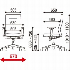 ●肘高さ/630から720mm