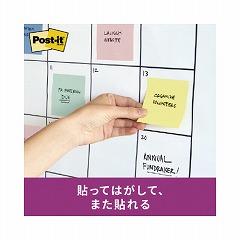 つきにくかった樹脂面にもしっかり貼れて、きれいにはがせる強粘着タイプのポストイット。詳しい伝言、情報整理などに便利なサイズ。文字が見やすいパステルカラー。たっぷり入ってお得なイエローエコノパック。