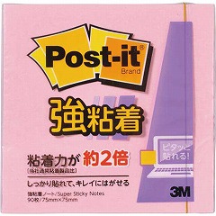 つきにくかった樹脂面にもしっかり貼れて、きれいにはがせる強粘着タイプのポストイット。ちょっと詳しい伝言、情報整理などに便利な、定番の正方形サイズ。文字が見やすいパステルカラー。ピンク1冊。