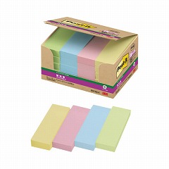 つきにくかった樹脂面にもしっかり貼れて、きれいにはがせる強粘着タイプのポストイット。一言メモ、伝言メモ、見出しにおすすめのサイズ。文字が見やすいパステルカラー。たっぷり入ってお得な混色エコノパック。
