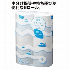 芯なしシングル150mの再生ロングロールのトイレットペーパー。小分け保管、持ち運びが便利な6ロールパック。取替頻度も削減。