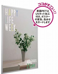 裏入れ式で出し入れ簡単!掲示・ディスプレイ用アルミフレーム。表面PETはUVカット加工付きなので変色をガードします!