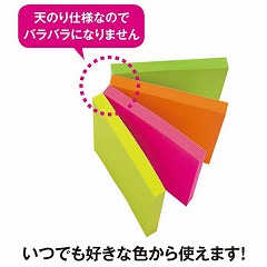 何色かのふせんを使い分けしたい方にオススメ!4色どれでも使いたい色からサッと使える「天のりタイプ」、見落とし防止に役立つネオンカラー。
