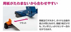 ガイドを回転させるだけで素早く簡単にセンター合わせが出来ます。「楽あけリンク機構」で穴あけが軽く滑らかです。ガイドは負荷がかかると外れる機構なのでガイド折れせずに長く使えます。