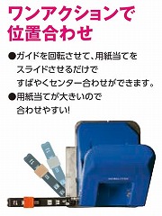 ガイドを回転させるだけで素早く簡単にセンター合わせが出来ます。「楽あけリンク機構」で穴あけが軽く滑らかです。ガイドは負荷がかかると外れる機構なのでガイド折れせずに長く使えます。