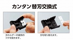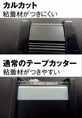 独自の特殊加工刃で約1/2の軽い力でテープを切ることができます(コクヨ従来品比)。切ったテープの切り口はまっすぐキレイです。刃の交換は簡単です。刃はテープののりが付きにくく、切り心地が長持ちします。