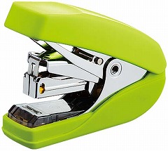 軽とじ機構搭載で、いつも使用している10号針で32枚もの書類を軽くとじることができます。とじた針足が平らになるフラットクリンチ機構。女性の手でもすっぽり収まるコンパクトさで、針を100本装填可能です。