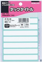 書類やファイルの分類に使用できる粘着剤付きのタイトル表示シール。鉛筆、ボールペン、サインペンなどできれいに記入できます。台紙から外して、すぐ貼れます。タイトルブレーン対応。