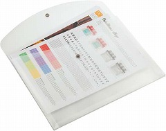 書類の分類保管に便利で、携帯にも安心な封筒型ファイル。たっぷりマチ付。背面に便利な透明ポケット付。