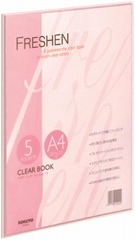 POPで爽やかな印象の透明カラーを採用したコクヨのクリヤーブック「フレッシェン」。薄いので持ち運びに便利。表紙が透明なので、提出ファイル用の見出し表紙として使えます。