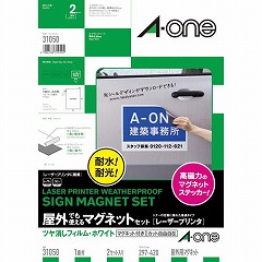 レーザープリンタ(LBP)で印刷できる、屋外でも使えるツヤ消し白フィルムラベルシールとマグネットシートのセット。印刷後付属のマグネットシートに貼り合わせます。A3サイズ。耐水性、耐光性に優れています。