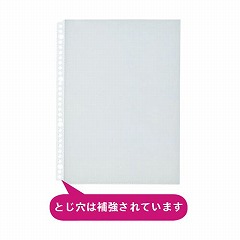 綴じ穴部をテープ補強したリフィルクリヤーポケット。エンボス加工しています。