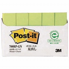 くり返し貼ったりはがしたりできるポストイット通常粘着製品です。見出しに便利なサイズ。資源の有効利用を考え、古紙パルプ配合率100%の再生紙を使用しています。