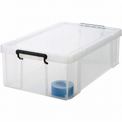 ロック式のフタ付きで丈夫な樹脂製ボックス。スタッキングもできて便利!キャスター(別売)を取り付ければ移動もラク!ロープを掛けられる溝がフタに付属。