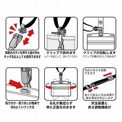タッグ名札用のクリップとしても使用可能な2WAYタイプの名札用ストラップ。