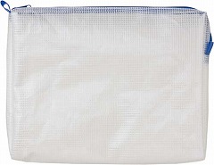 L字型のファスナーが大きく開き、出し入れしやすい。三センチのマチ付きで厚みのある物も収納可能です。