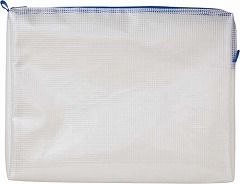 L字型のファスナーが大きく開き、出し入れしやすい。三センチのマチ付きで厚みのある物も収納可能です。