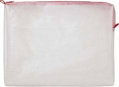 L字型のファスナーが大きく開き、出し入れしやすい。三センチのマチ付きで厚みのある物も収納可能です。
