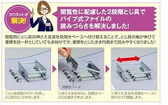 とじ具のパイプ部分の幅がのびて、書類が閲覧しやすいパイプ式ファイル。