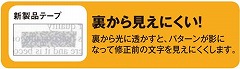 従来の修正テープの白色層の下に、特殊パターンを応用した文字パターンを印刷することで、修正前の文字を裏面から透かした際も読みにくい!表からも裏からも大切な情報を守ります。