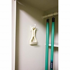 自在ホーキの毛に絡みついたホコリやゴミを簡単に取ることができます!手を汚さずに衛生的!不使用時はフックにかけて保管できます。