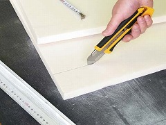 ●概要/床材、石膏ボードなど厚手素材のカットに。オートロック式特大カッター。